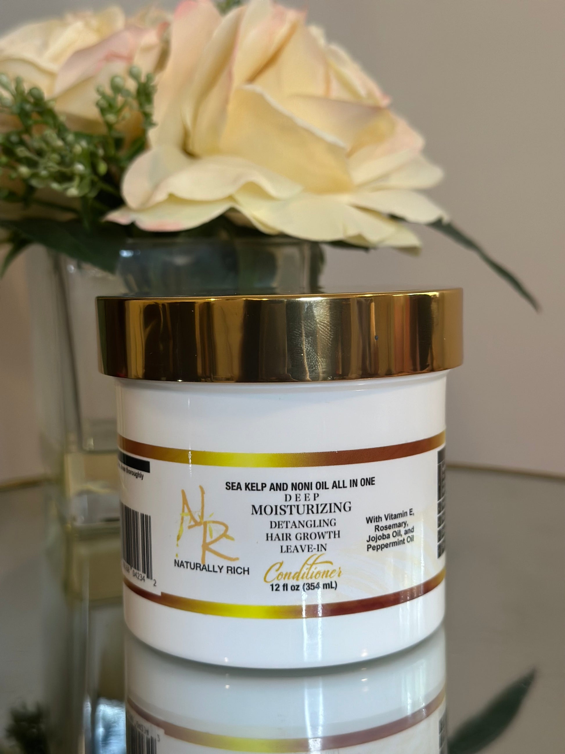 Our Conditioner is made with Noni Seed oil, Sea Kelp and a variety of natural oils rich with nutrients to strengthen, thicken, and moisturize the hair from the bottom layers of the follicles to the very ends of the hair.